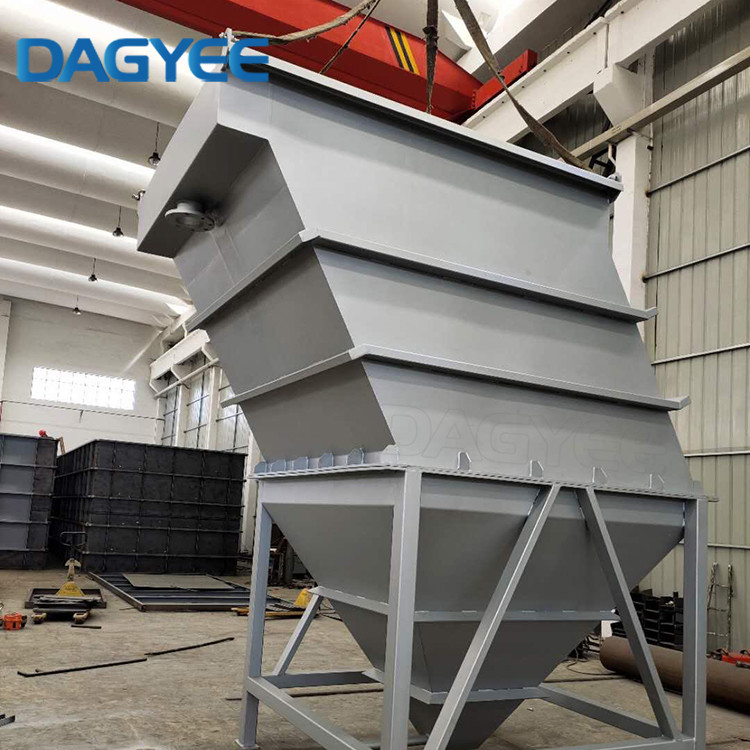 総中断された固体(TSS)は傾向がある版を持っていることによって自然に重力が原因で、このプロセスをスピードをあげられ、改良することができるそのうちに解決する。60°角度の版の上の水流。重力は版に解決するために固体を強制する。粒子は版でなり、より重く版の下でクラリファイヤーの円錐形に滑る集まる。このプロセスは固体が交通の2つの車線に液体から分かれているカウンターのフロー パターンを作成する。上向きの縛られた車線の水流、および下りの車線の沈積物の流れ。この方法は固体が自然に解決することより速い解決プロセスを作成する抗力および摩擦をより減らす。